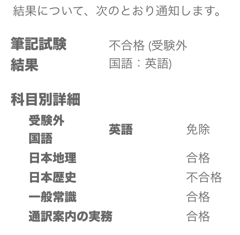 通訳案内士の一次試験は8月の半ばで、手ごたえとしては五分五分だと思っていたのですが、やはり苦労していた日本史を66点で落としてしまい(合格は70点以上)、二次に進むことができなくなりました。